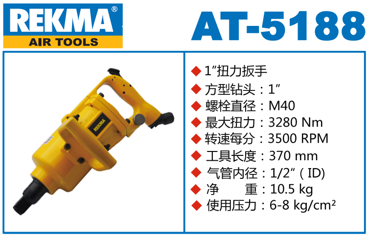 銳克馬REKMA AT-5188L進(jìn)口風(fēng)炮特點(diǎn):(重力壓鑄外殼,強(qiáng)度更高不變形,提高耐用度)