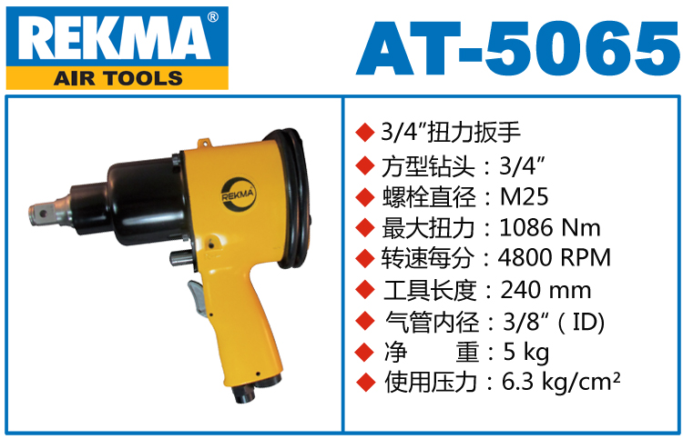 銳克馬REKMA AT-5065氣動沖擊扳手特點:(重力壓鑄外殼,強(qiáng)度更高不變形,提高耐用度)