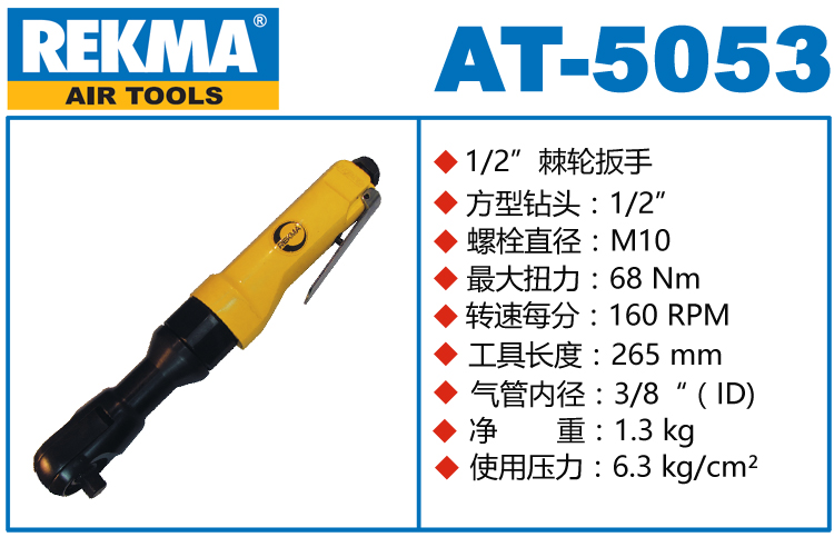 銳克馬REKMA AT-5053汽保氣動棘輪扳手特點:(重力壓鑄外殼,強度更高不變形,提高耐用度)
